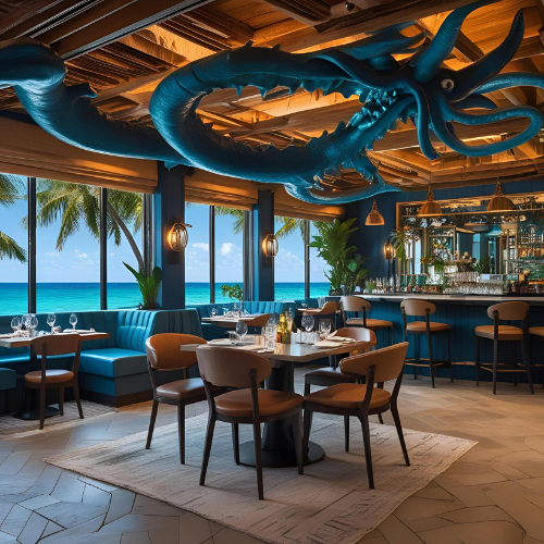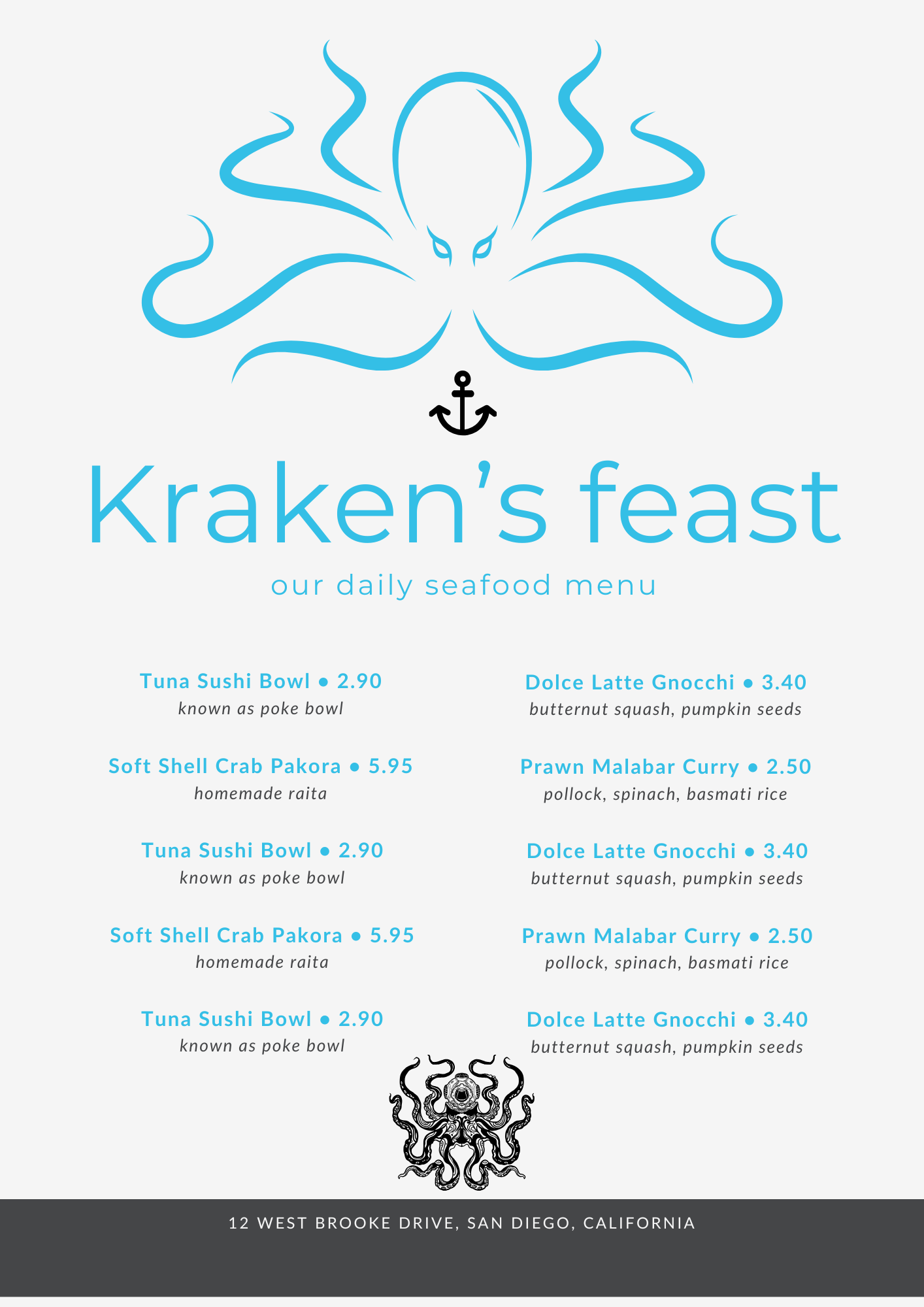 Project's Oceanic Ventures Creating a modern logo that reflects the company’s ecological values and innovation. Kraken's feast A comprehensive visual identity project, including a logo, menu, business cards, and promotional materials.